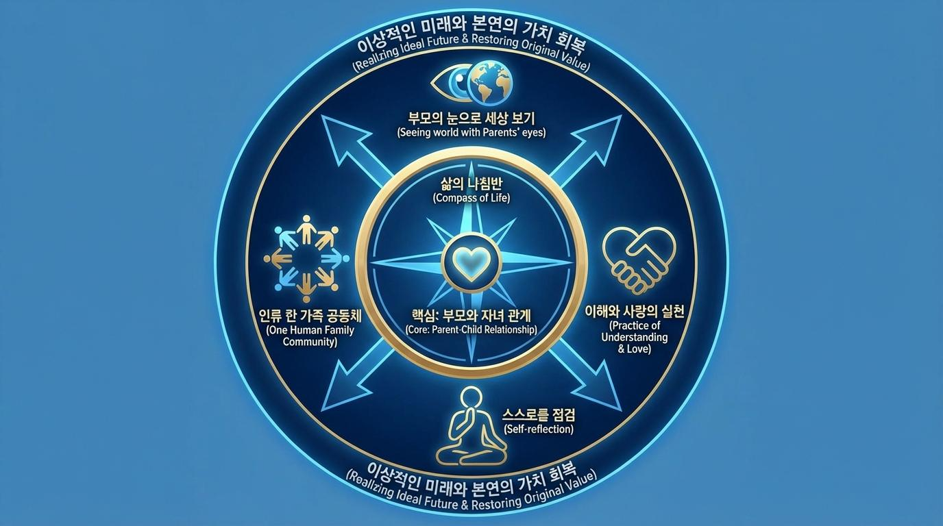 그렇다면 이 심오한 원리의 핵심은 무엇일까요? 이는 인류를 창조한 존재와 우리의 관계가 부모와 자녀의 관계라는 근원적인 깨달음에서 출발합니다. 인류의 조상이 본래의 창조 원칙을 벗어나 타락함에 따라, 창조주께서는 사랑의 마음으로 인류를 구원하시기 위한 역사를 끊임없이 펼쳐 오셨습니다.